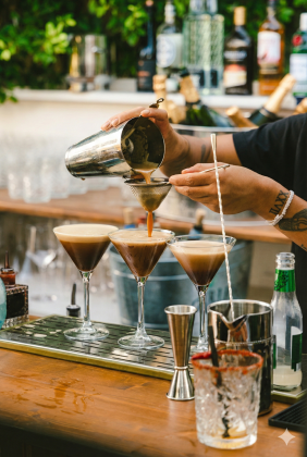 The couple arrived early with their bridal party and had photos taken before the guests arrived. Excellent Chris and Ruth Photography and Santiago Boceta video documented. The early photos gave Julia and Jake more time to enjoy every moment of their celebration. They sipped Espresso Martinis and tucked into yummy croquettes and delicious pasta at the food stations. The guests swung their napkins as the stunning couple made their dinner entrance, and the rest of the evening was one long succession of celebration, dancing and fun. And Julia and Jake radiated blissful happiness, the way only two people who adore each other can.