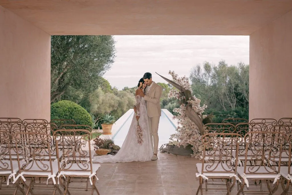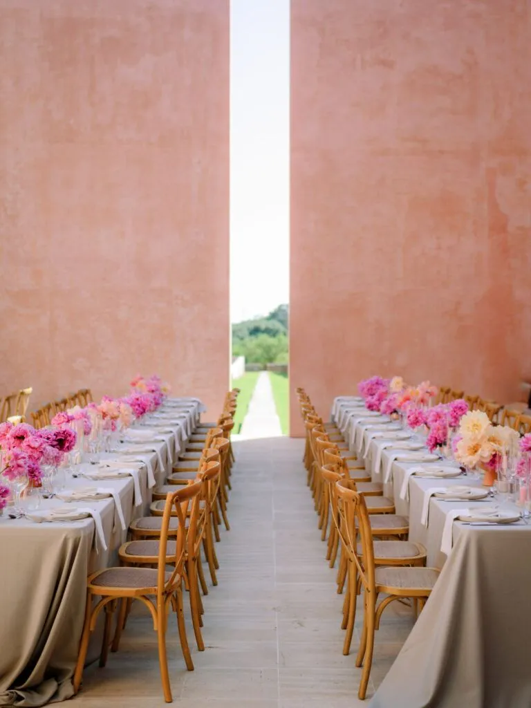 Description: The stellar architects Claudio Silvestrin and John Pawson have transcended art and modern functionality in this villa creation. Pristine beaches are nearby. At the villa, the allure includes two saltwater pools, a tennis court, a vegetable garden, and modern appliances. But the views, the stylish design, the blend of the evening light with the beautiful pink colour and the exciting way you can create a wedding ambience to suit it make it especially exciting. It is also the dream place for many to shoot for a wedding photographer.