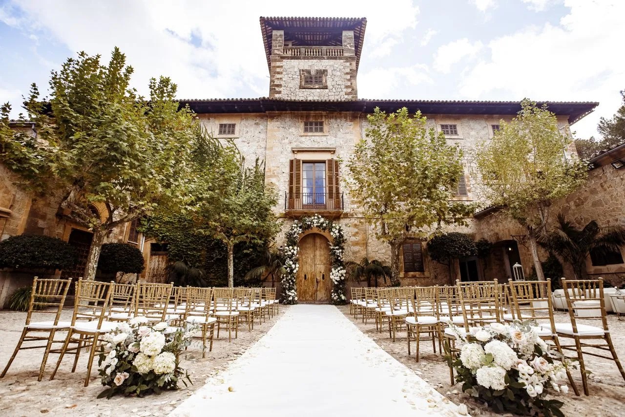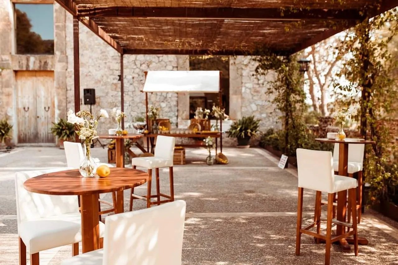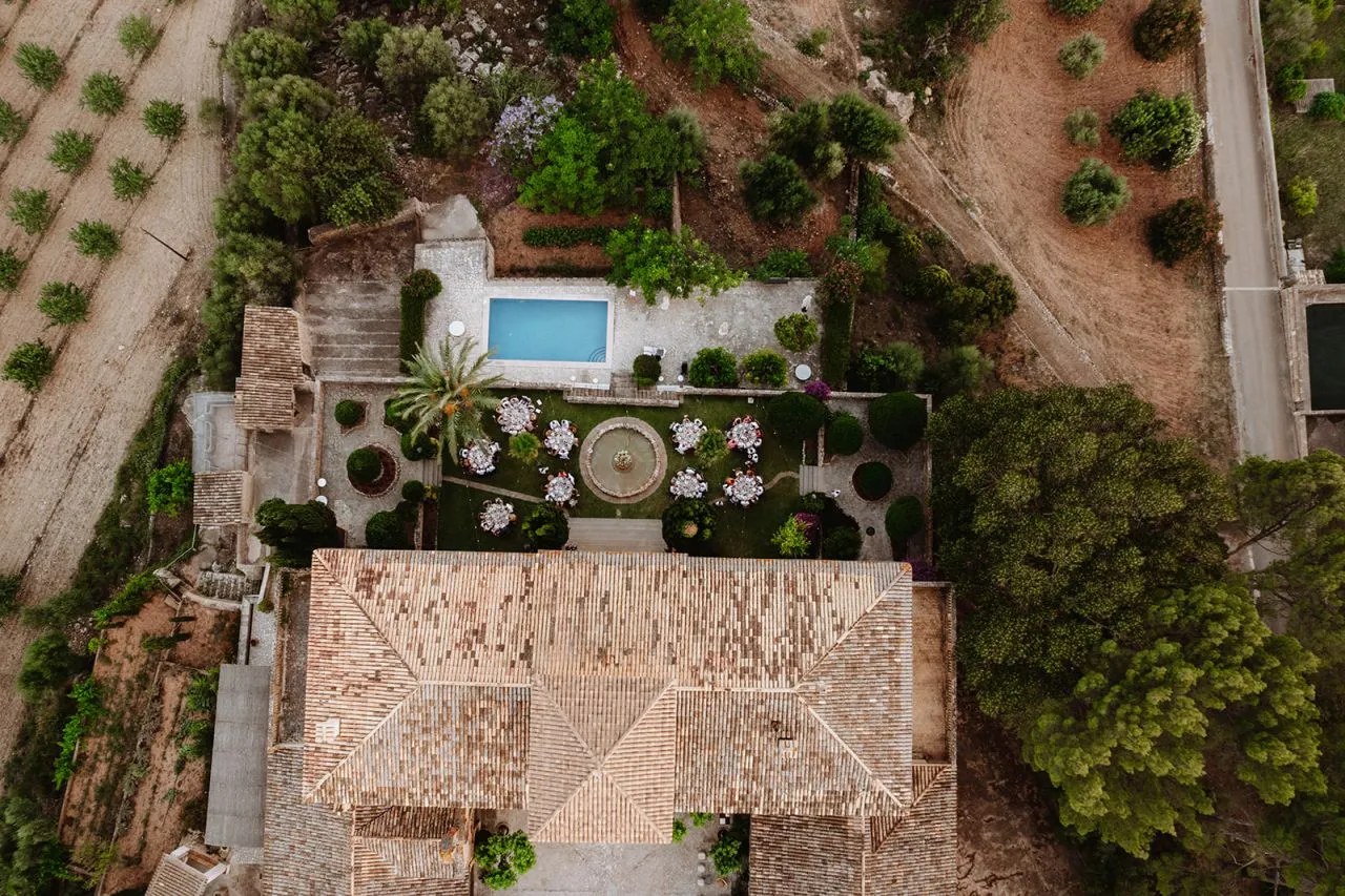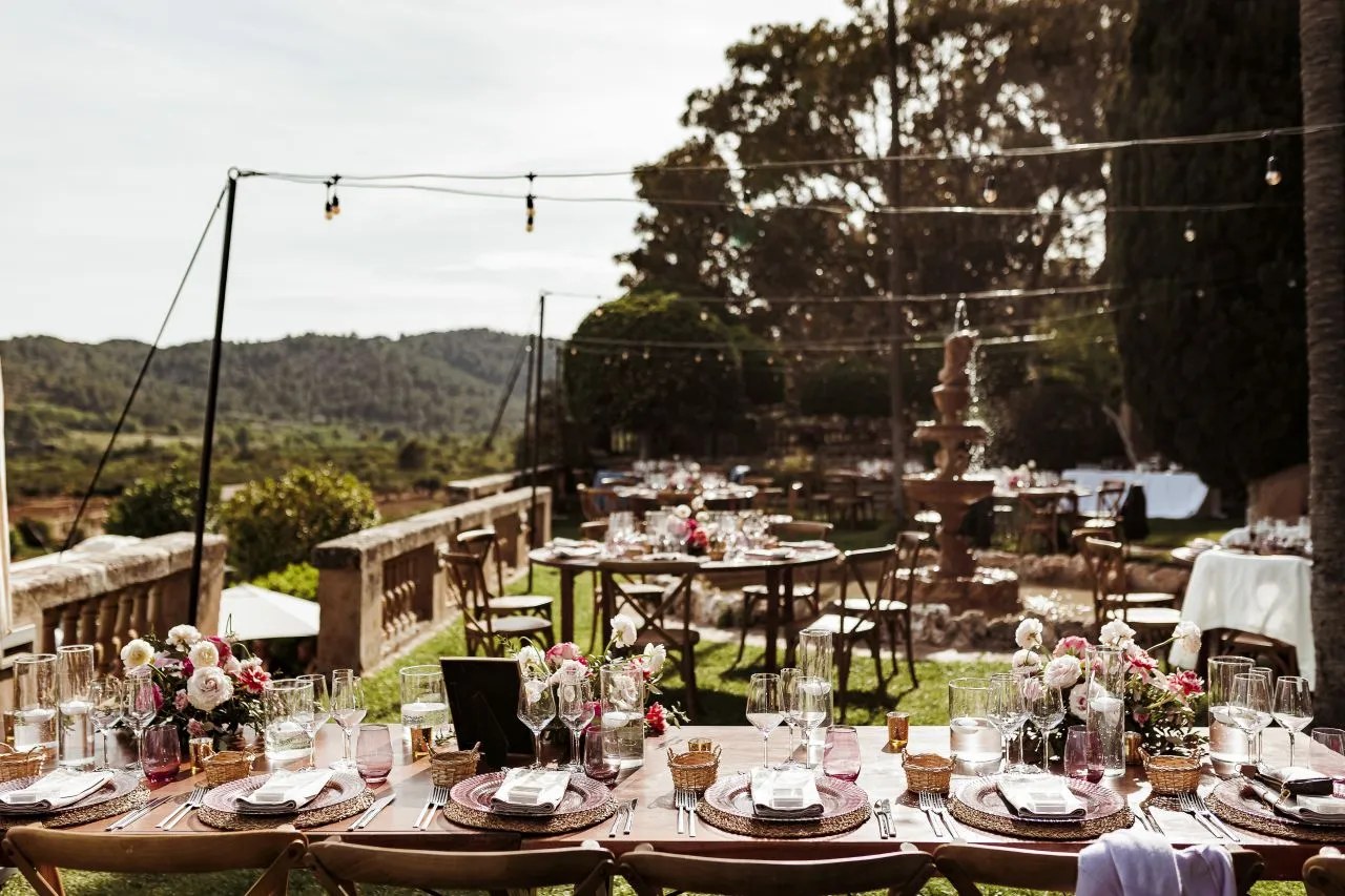 Numbers: A maximum of 120 guests are welcome. The ceremony is often held in the courtyard, by the chapel, on the terraces where the views are, or in an open field under two large and lovely trees. The dinner can be held on both sides of the finca. There is a spacious Plan B area and a dancing club room, too. The pool is not to be used during the event.