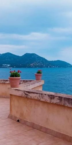 A finca right next to the sea is a rare and beautiful thing! Finca Port Verd has a terrace overlooking the turquoise Mediterranean sea. There is even an area under the roof with sea views. Enjoy pretty gardens and a fortress, too.